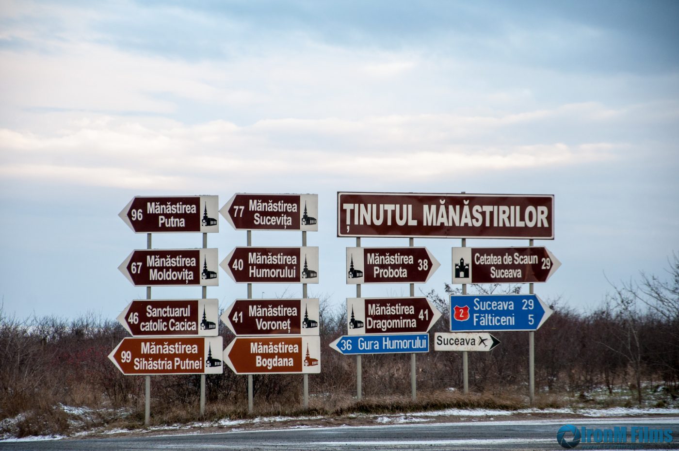 Ziua urmatoare am plecat spre tinutul manastirilor…spre Suceava. Pe drum (E85) la intersectia cu drumul national 2E (spre Gura Humorului) se vede reclama manastirilor 🙂 (localitatea Spatareti)