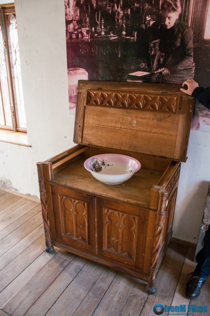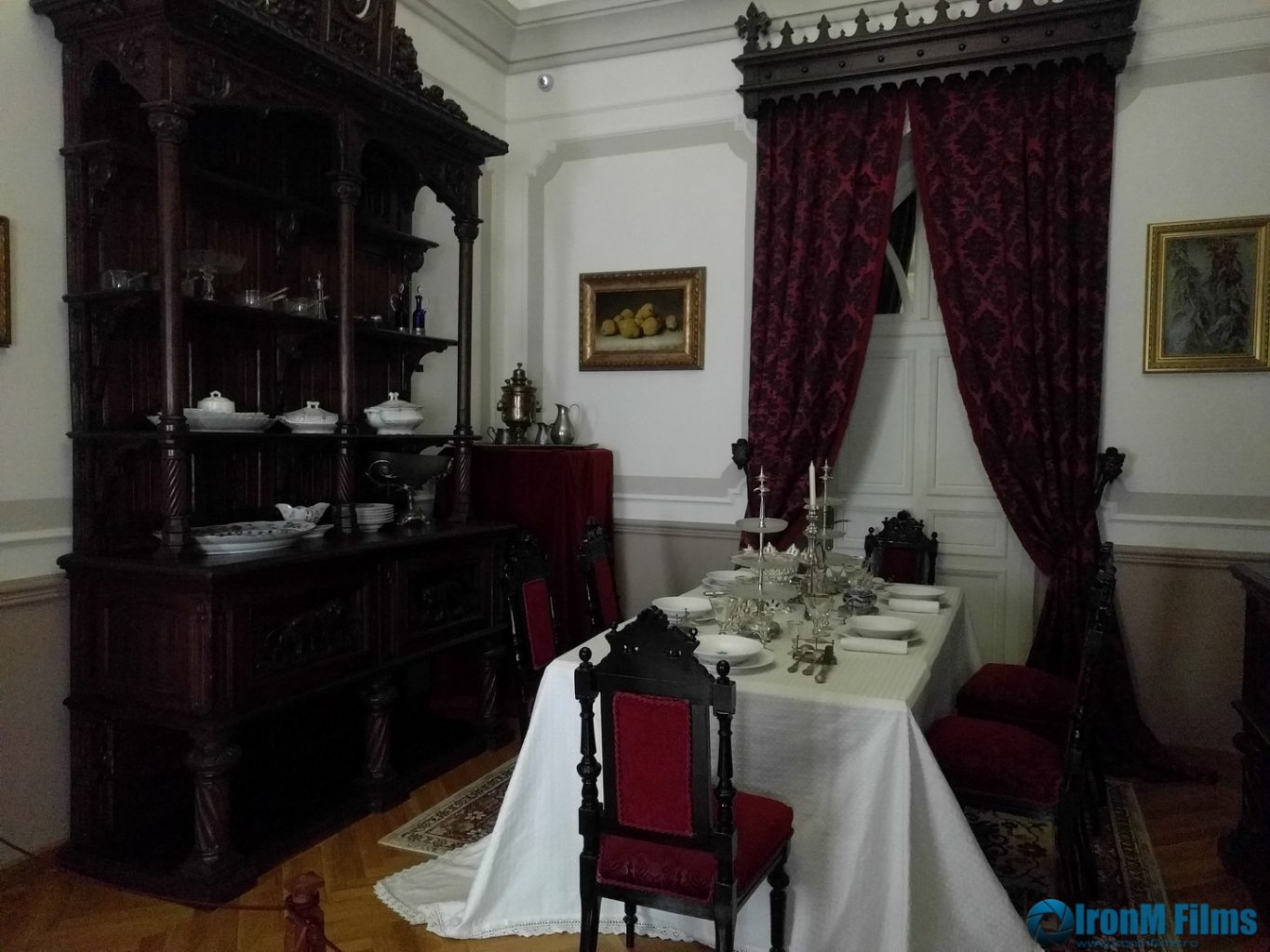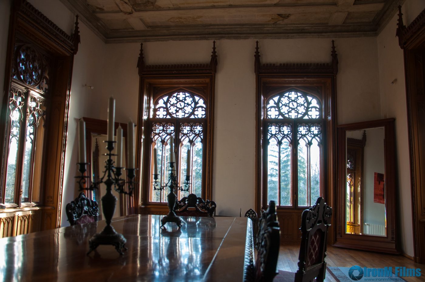 Ghidul, care are biroul in cladirea din stanga, ne-a plimbat pe cele doua nivele ale castelului povestindu-ne, cu o foarte mare atentie la detalii, o parte din istoria familiei Sturdza facandu-ne o mica idee despre “viata la palat”. Tot mobilierul de lemn, ornamentele si picturile de pe pereti precum si o mare parte din colectia de carti rare (aprox 60.000 de exemplare) au fost distruse ori in incendii ori vandalizate de catre soldatii rusi din timpul celui de-al doilea razboi mondial (ce foloseau cartile pe post de “lemn de foc” in sobe).